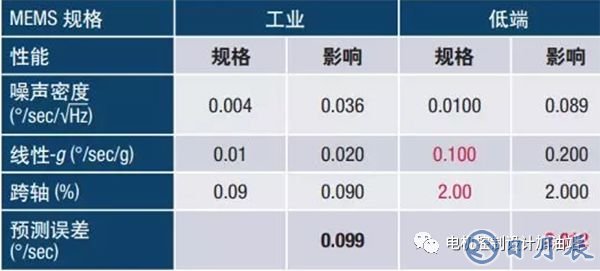 表4. 工業(yè)和低端MEMS的RSS誤差比較,表明噪聲不是性能影響因素