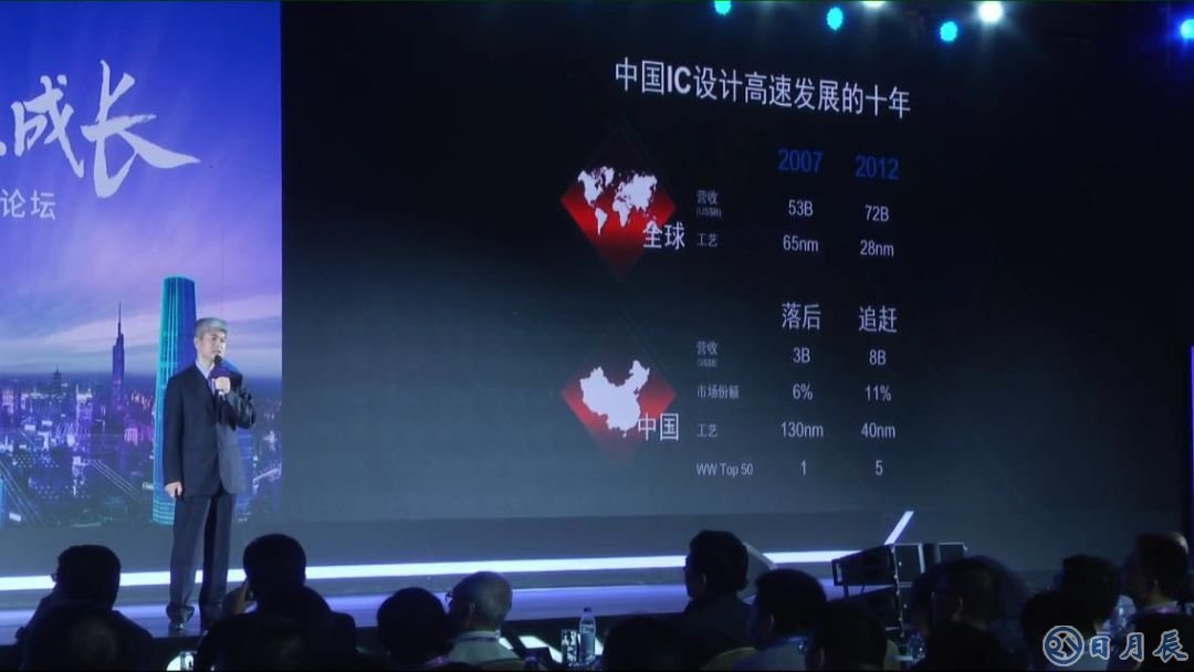 他回顧2012年,中國(guó)的集成電路設(shè)計(jì)業(yè)的產(chǎn)值已經(jīng)占到80億美元,在全球的占比已經(jīng)達(dá)到了11%,在營(yíng)收成長(zhǎng)的同時(shí),也看到在技術(shù)上跟進(jìn);在2007年的時(shí)候,當(dāng)全球是在用65納米的時(shí)候,中國(guó)用的是0.13微米,2012年全球最領(lǐng)先設(shè)計(jì)公司在用28納米的時(shí)候,中國(guó)用的是40納米,也就是從原來(lái)的落后兩個(gè)時(shí)代追趕到了落后一個(gè)時(shí)代。