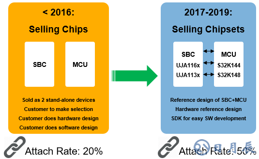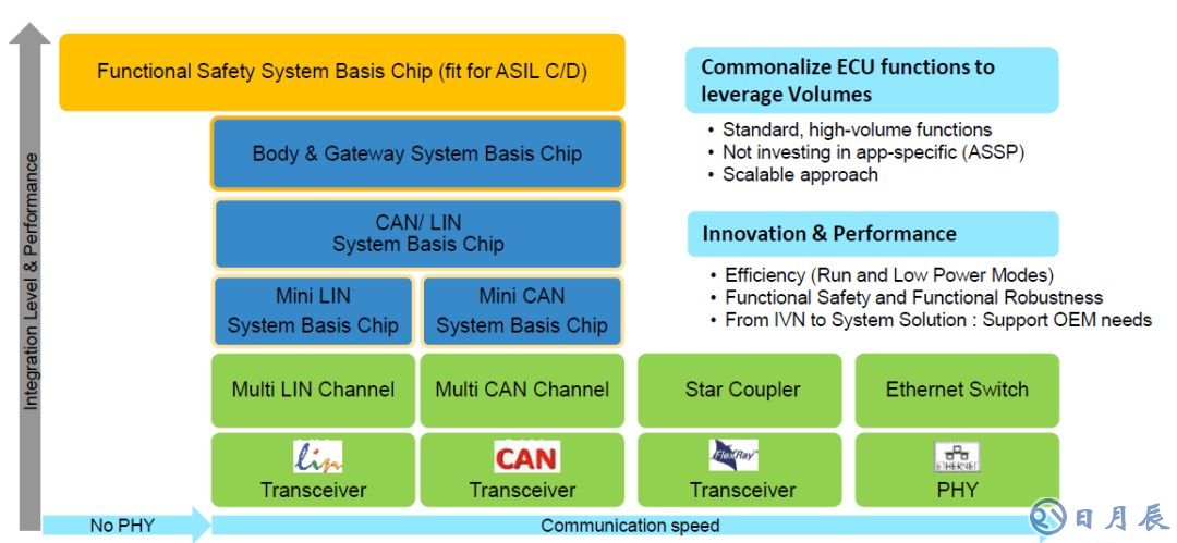 NXP SBC產(chǎn)品正是集成化產(chǎn)品的一種,其可以提供CAN FD+電源+系統(tǒng)安全設(shè)計的單一芯片解決方案,針對不同的系統(tǒng)需求,可以提供從簡單到復(fù)雜甚至到符合功能安全ASIL-D的產(chǎn)品組合。