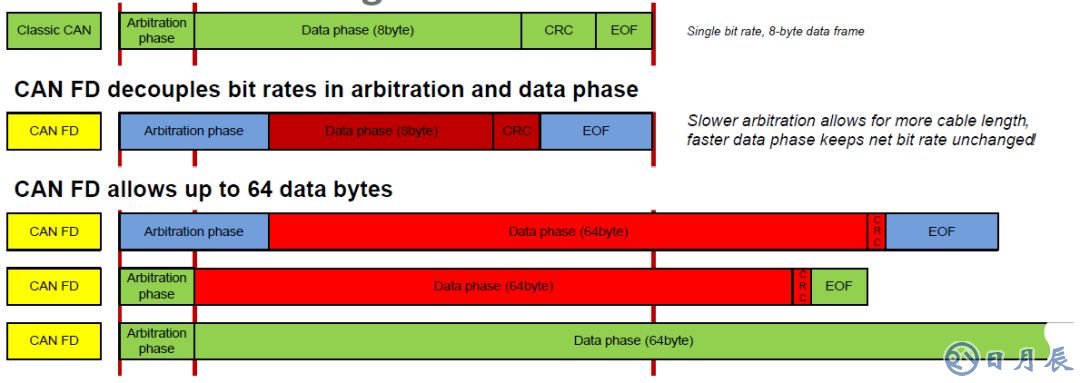 近年來,隨著汽車電子節(jié)點數(shù)量不斷增加,數(shù)據(jù)量不斷提升,傳統(tǒng)高速CAN 1Mbps的帶寬已經(jīng)不足以滿足日益增長的帶寬需求,而如果全部直接使用Flexray或者Ethernet 對于車廠而言不僅具有技術(shù)難度,其成本也是當(dāng)前消費者所無法接受的,所以市場迫切需求一種能夠向下兼容傳統(tǒng)高速CAN,同時又能將帶寬進一步提升的網(wǎng)絡(luò)產(chǎn)品,CAN FD的就是這種背景下的產(chǎn)物。