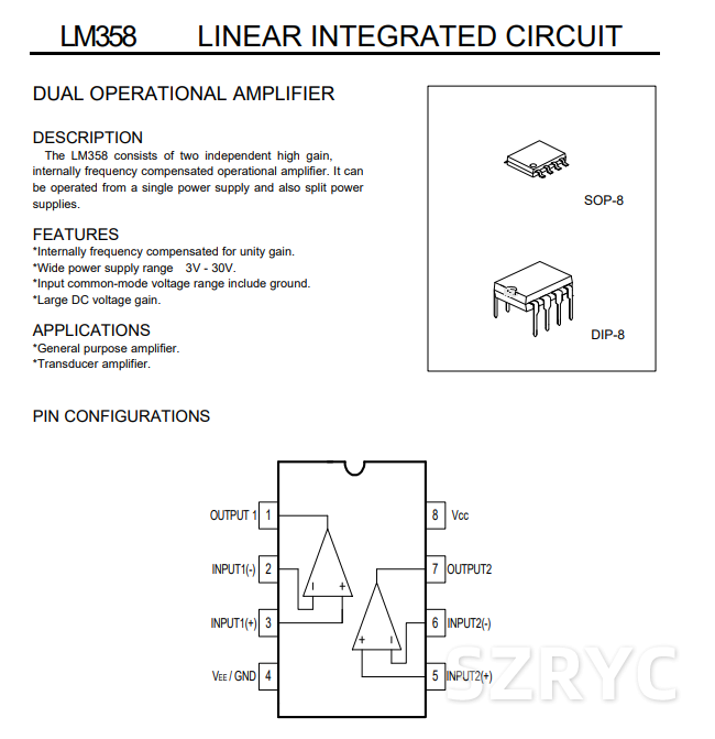 LM358是雙運算放大器。內(nèi)部包括有兩個獨立的、高增益、內(nèi)部頻率補償?shù)倪\算放大器,適合于電源電壓范圍很寬的單電源使用,也適用于雙電源工作模式,在推薦的工作條件下,電源電流與電源電壓無關(guān)。它的使用范圍包括傳感放大器、直流增益模塊和其他所有可用單電源供電的使用運算放大器的場合。