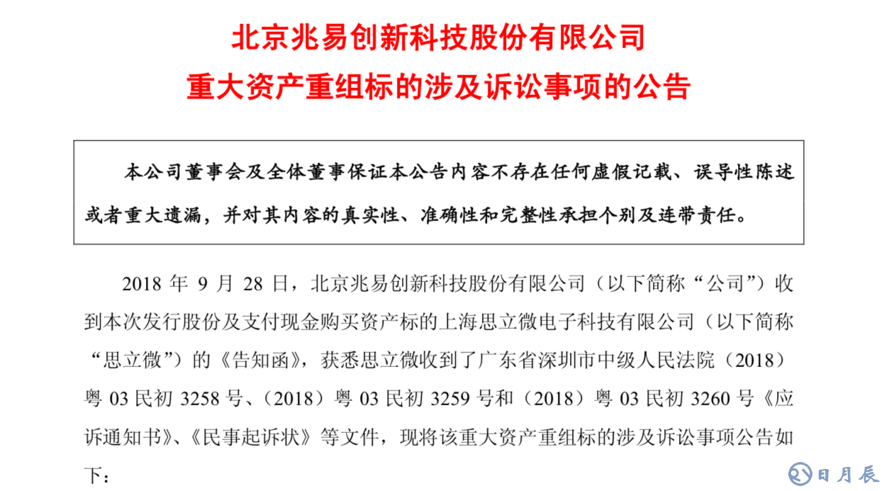 集微網(wǎng)消息,2018年9月28日,北京兆易創(chuàng)新科技股份有限公司(以下簡稱 “兆易創(chuàng)新”)發(fā)布公告稱,其重大資產(chǎn)重組標的上海思立微電子科技有限公司 (以下簡稱 “思立微”)近日收到了廣東省深圳市中級人民法院的多封應(yīng)訴通知書。