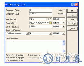 電路連接完成后,選中AT89C51單擊鼠標(biāo)左鍵,打開“Edit Component”對(duì)話窗口如圖3所示,可以直接在“Clock Frequency”后進(jìn)行頻率設(shè)定,設(shè)定單片機(jī)的時(shí)鐘頻率為12MHz。在“Program File”欄中選擇已經(jīng)生成的data.hex文件,把在Keil編寫的程序?qū)隤roteus,然后單擊“OK”按鈕保存設(shè)計(jì)。至此,就可以進(jìn)行單片機(jī)的仿真。