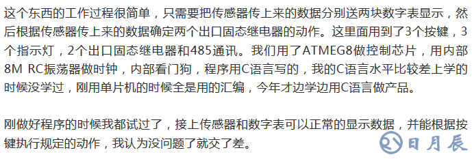 同事拿著我做的控制器去操作箱上安裝配線,后來調(diào)試的時候同事告訴我說裝置死機(jī)了...