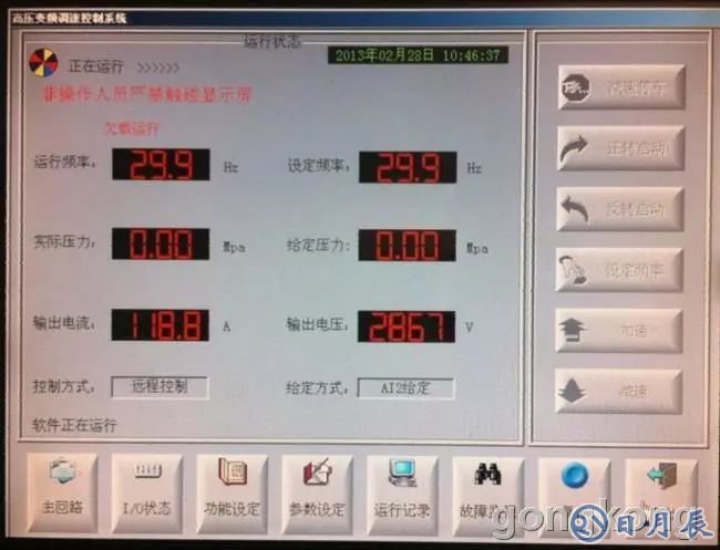 高壓變頻器已經(jīng)運(yùn)行;另外重新給控制柜送電,發(fā)現(xiàn)這個(gè)高壓變頻器的觸摸屏面板,其實(shí)不是咱們常見(jiàn)的普通觸摸屏,原因它的操作系統(tǒng)不是WINCE,而是WINXP專(zhuān)業(yè)版的。