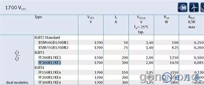 在管子的側(cè)面有型號(hào)的,當(dāng)然你等他炸了才看,那是看不到的,至于如何檢查,說(shuō)句實(shí)話(huà)咱心里真沒(méi)底,幸好有度娘啊,可以找到這個(gè)型號(hào)的參數(shù),也證實(shí)了現(xiàn)場(chǎng)和施工單位的技術(shù)人員討論(其實(shí)是爭(zhēng)論)的一個(gè)事實(shí),他建議要求變頻器廠家把這個(gè)IGBT改成300A的,然后我依稀記得這個(gè)型號(hào)就是300A的,告訴現(xiàn)場(chǎng)本身就是300A的;