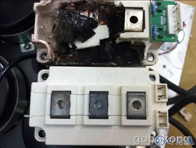 IGBT是2個(gè)并聯(lián)的,按道理是2個(gè)會(huì)同時(shí)壞的,開(kāi)始也以為是控制板和驅(qū)動(dòng)引起的,但是控制板舊的可以繼續(xù)使用,另一個(gè)IGBT現(xiàn)在繼續(xù)運(yùn)行;炸的IGBT上的觸發(fā)上面的小控制板,拆下來(lái)?yè)Q到新的IGBT上,還報(bào)故障的;所以我覺(jué)得就是那小板引起的,小板看就是電阻啊。進(jìn)線(xiàn)的快熔燒壞了的,快熔也換了。所以覺(jué)得這個(gè)快熔起的保護(hù)作用還可以。
