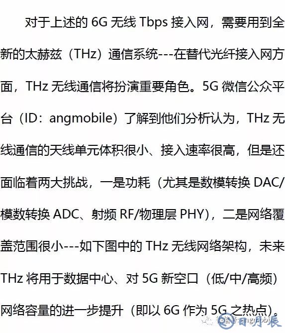 6G和5G的區(qū)別在于,其速度更快,并且時延更低。飛象網(wǎng)首席執(zhí)行官項立剛表示,6G網(wǎng)絡很有可能從毫米波頻段擴展到太赫茲波頻段,有望進行水下信號覆蓋。如果按照太赫茲波頻段0.1THz到10THz的頻率和0. 03 毫米到 3 毫米的波長范圍來計算,今后6G的峰值速度有望達到100Gbps。