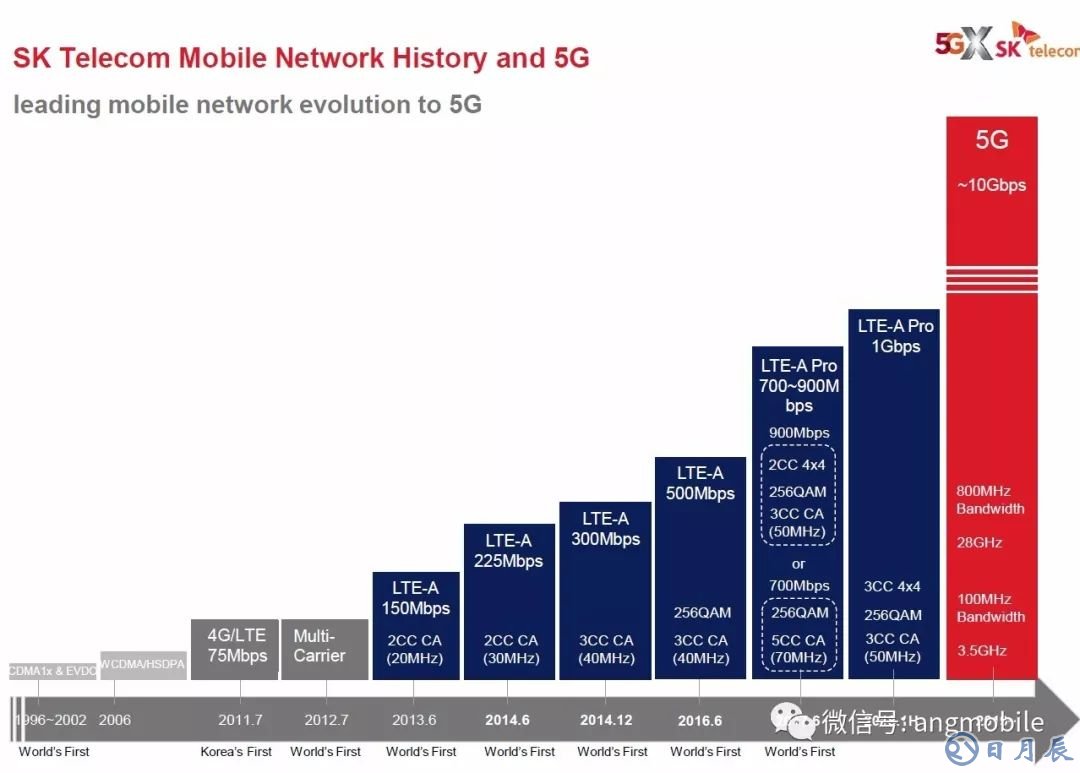 他們介紹,作為韓國第一大移動通信基礎網(wǎng)絡運營商,SK電訊從3G網(wǎng)絡(1996年)到5G網(wǎng)絡(2019年)的技術發(fā)展歷程(其中有多次達到“全球率先”水平),并表示,SK電訊目前正引領著韓國的移動通信網(wǎng)絡向5G的升級演進: