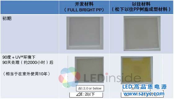 耐光性加速試驗結果(照片出自松下新聞發(fā)布資料)