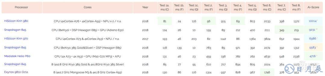 ▲AIBenchmark完整列表見:http://ai-benchmark.com/ranking.html,圖片截至2018.11.15,名單不斷更新中