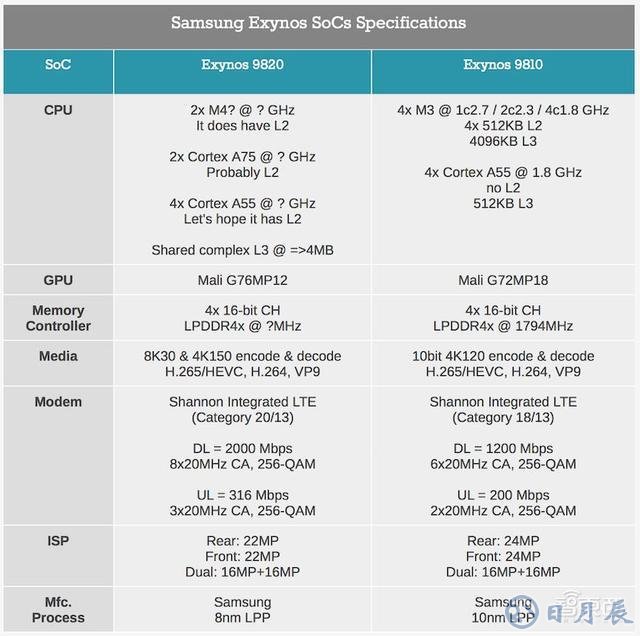 由于三星手機有著“一機兩芯”策略,也就是同一款手機會采用搭載高通驍龍芯片和三星Exynos芯片的兩個版本,所以從Exynos9820所透露的信息中,我們也能多少推測出驍龍新一代手機芯片的性能特征。