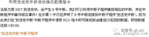 一般情況下,使用結(jié)束字符作為RCV指令的結(jié)束條件比較可靠。如果通信對(duì)象的消息幀中以一個(gè)不定的字符(字節(jié))結(jié)束(如校驗(yàn)碼等),就應(yīng)當(dāng)規(guī)定消息或字符超時(shí)作為結(jié)束RCV指令的條件。但是往往通信對(duì)象未必具有嚴(yán)格的協(xié)議規(guī)定、工作也未必可靠,這就可能造成RCV指令不能正常結(jié)束。這種情況下可以使用字符接收中斷功能。如下圖
