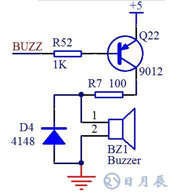 我們來看一下圖1的電路,蜂鳴器電流依然相對較大,因此需要用三極管驅(qū)動,并且加了一個 100 歐的電阻作為限流電阻。此外還加了一個 D4 二極管,這個二極管叫做續(xù)流二極管。我們的蜂鳴器是感性器件,當(dāng)三極管導(dǎo)通給蜂鳴器供電時,就會有導(dǎo)通電流流過蜂鳴器。而我們知道,電感的一個特點就是電流不能突變,導(dǎo)通時電流是逐漸加大的,這點沒有問題,但當(dāng)關(guān)斷時,經(jīng)“電源-三極管-蜂鳴器-地”這條回路就截斷了,過不了任何電流了,那么儲存的電流往哪兒去呢,就是經(jīng)過這個 D4 和蜂鳴器自身的環(huán)路來消耗掉了,從而就避免了關(guān)斷時由于電感電流造成的反向沖擊。接續(xù)關(guān)斷時的電流,這就是續(xù)流二極管名稱的由來。