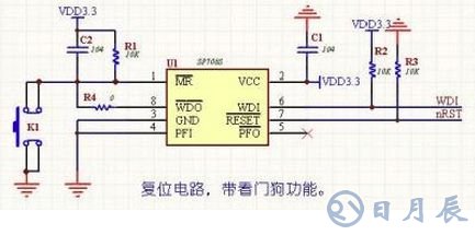 5. SP706S復(fù)位電路:帶看門(mén)狗和手動(dòng)復(fù)位,價(jià)格便宜(美信的貴很多),R4為調(diào)試用,調(diào)試完后焊接好R4。