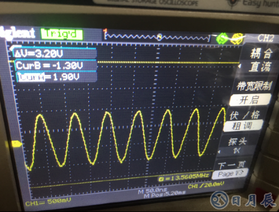 用示波器讀取PN512信號波形,正弦波非常好看,波形幅值是可以調(diào)節(jié)的,大家可以通過調(diào)節(jié)電路中的C3 C4 C6 C7來調(diào)節(jié)波形,正常情況下波形可以達到2V就可以了,幅值越小讀取的距離越近,但是幅值太大的話容易讀取不穩(wěn)定,具體大家可以自己調(diào)節(jié)一下。