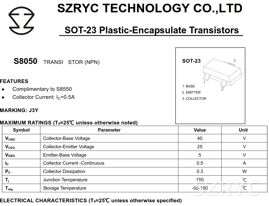 S8050是一款常用的NPN型雙極晶體三極管,廣泛應用于各種電子電路中。以下是S8050三極管的一些主要參數(shù):