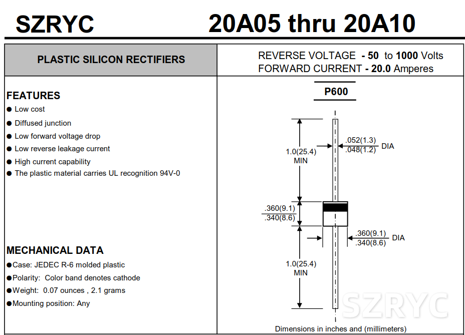 - **最大正向電流**:20A(這是二極管在正向?qū)〞r可以承受的最大電流)