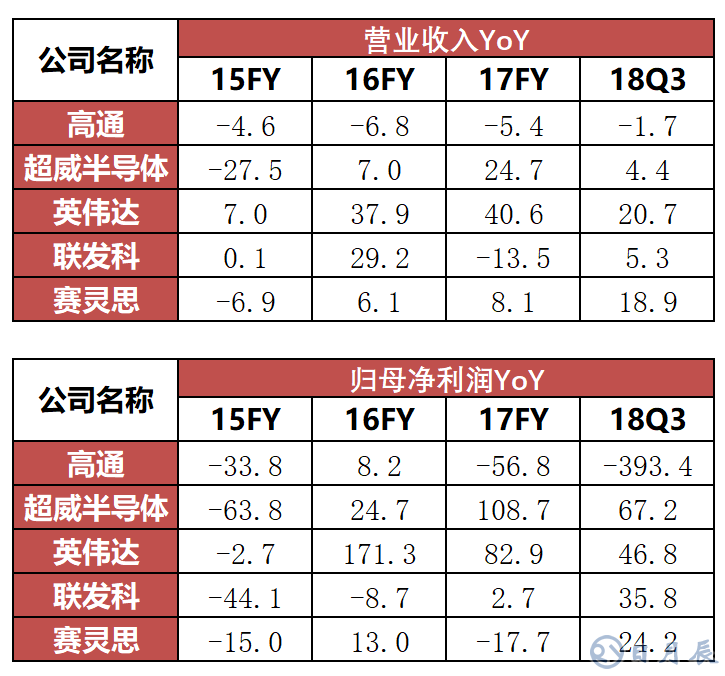 那全球半導(dǎo)體到底有多差呢?我們來看看全球十大半導(dǎo)體巨頭近4年的業(yè)績增速情況: