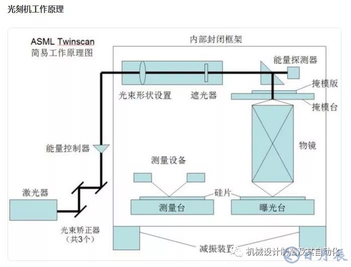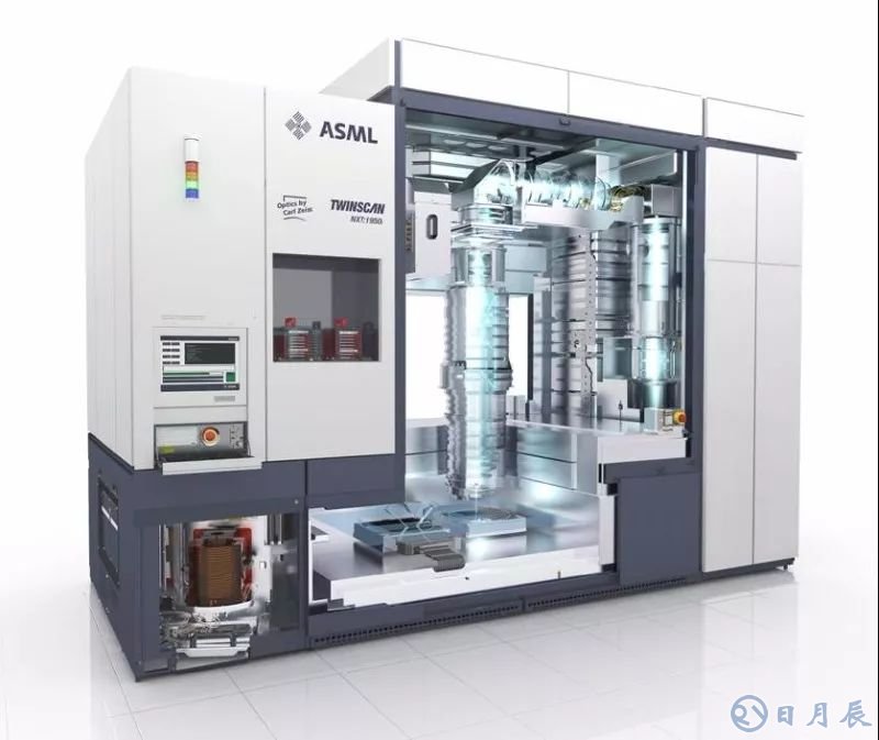 上面這個就是ASML光刻機的截面圖,這臺機器價值不菲。事實上中國的芯片制造商們要想量產7nm及其以下的工藝的芯片,就必須引入EUV光刻機。