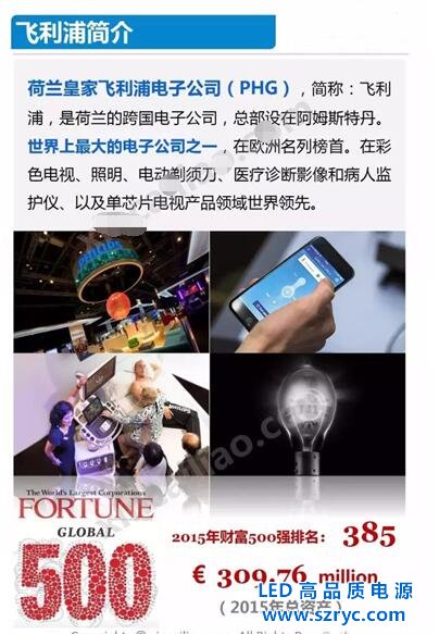 飛利浦成立于荷蘭,主要生產(chǎn)照明、家庭電器、醫(yī)療系統(tǒng)方面的產(chǎn)品。飛利浦公司,2007年全球員工已達(dá)128,100人,在全球28個(gè)國(guó)家有生產(chǎn)基地,在150個(gè)國(guó)家設(shè)有銷(xiāo)售機(jī)構(gòu),擁有8萬(wàn)項(xiàng)專(zhuān)利,實(shí)力超群。2011年7月11日,飛利浦宣布收購(gòu)奔騰電器(上海)有限公司,金額約25億元。2011年10月17日,飛利浦電子發(fā)布了第三季度財(cái)報(bào),第三季度凈利潤(rùn)同比下滑85.9%;同時(shí)宣布,飛利浦將在全球范圍內(nèi)裁員4500人。2013年1月底,飛利浦消費(fèi)電子業(yè)務(wù)已全部剝離,將聚焦優(yōu)質(zhì)生活,醫(yī)療和照明設(shè)備行業(yè)。