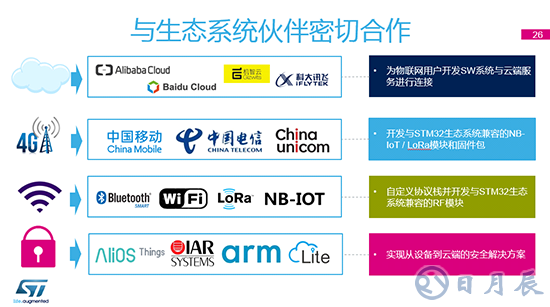 ST深耕中國市場多年,與很多關(guān)鍵合作伙伴都有非常密切的合作,尤其是在物聯(lián)網(wǎng)領(lǐng)域。比如和阿里巴巴在物聯(lián)網(wǎng)領(lǐng)域的合作。ST已經(jīng)為物聯(lián)網(wǎng)應(yīng)用建立了一個完整的軟件生態(tài)系統(tǒng),包括操作系統(tǒng)、安全性和連接性,將AliOS節(jié)點至云端垂直整體解決方案及意法半導(dǎo)體物聯(lián)網(wǎng)技術(shù)的多樣產(chǎn)品組合,包括傳感器、處理器、數(shù)據(jù)安全、通信連接和功率管理。