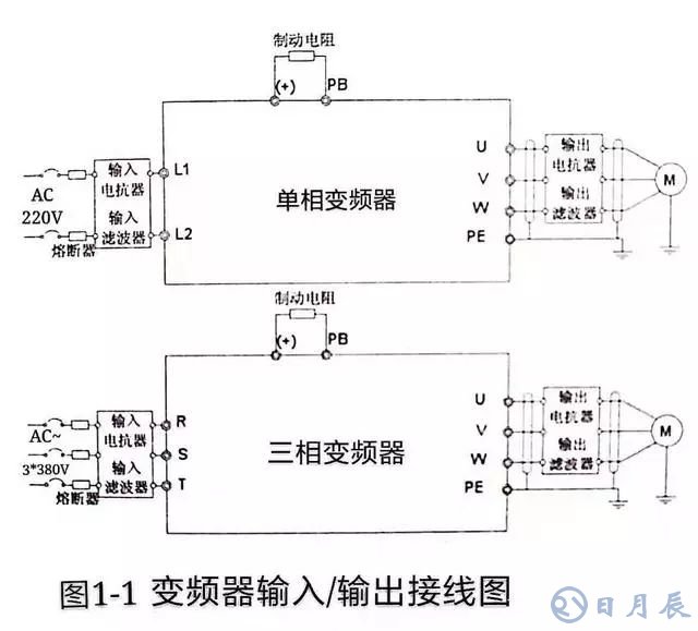 一般當電動機與變頻器的距離超過50米時,應該在變頻器輸出端子U、V、W與電動機的輸入端子中串接電抗器、濾波器或采用帶金屬屏蔽層的電力電纜進行駁接。另外對有控制信號電纜的,需要將動力電纜與控制電纜分開走線,禁止使用不對稱電機電纜。如果是帶接地屏蔽的電纜,一定要與電動機的外殼接地接入接地電阻值良好的接地樁中,這樣可以在保證安全的同時,最少限度地減少電磁諧波干擾成分。 詳細接線示意圖(圖1-1)如下,請關注:容濟點火器