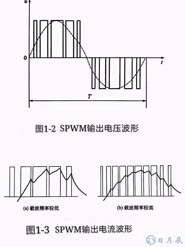 上圖1-2時為SPWM輸出的電壓波形,圖1-3為SPWM輸出的電流波形圖。由上兩個波形圖中可以清楚的看出,SPWM模式控制的變頻器輸出的電壓電流波形都有諧波成分,諧波頻率的大小與變頻器的載波頻率有直接關系(如圖1-3所示),如果提高載波頻率,可以使負載電流波形和正弦波波形接近,從而能夠減小輸出電流的諧波成分,而載波頻率的大小是受逆變器件的工作頻率的控制的。 變頻器的諧波干擾主要是通過電路傳導方式傳播的,當線路越長、變頻器的容量越大,所產(chǎn)生的高次諧波干擾越大,對變頻器本身和周圍的各種電氣儀表設備越大。