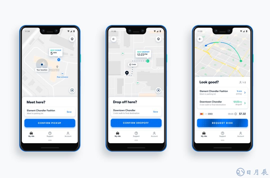 乘客將通過(guò)新的Waymo One手機(jī)App來(lái)預(yù)約車(chē)輛,使用方式是通過(guò)應(yīng)用程序選定上下車(chē)地點(diǎn),然后應(yīng)用會(huì)顯示車(chē)輛的當(dāng)前位置和預(yù)計(jì)抵達(dá)時(shí)間。在行程中,行程信息將在車(chē)輛后排屏幕上顯示,在行程結(jié)束后還可以給車(chē)輛以及行程評(píng)分,并提交反饋信息。