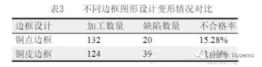 表3為兩種邊框設計板件的對比試驗結(jié)果。之所以兩種邊框形式變形表現(xiàn)不同,是因為連續(xù)形銅皮邊框強度高,在壓合及拼板加工過程中剛性比較大,使板件內(nèi)殘余應力不容易釋放,集中在外形加工后釋放,導致變形更嚴重。而非連續(xù)形銅點邊框則在壓合及后繼加工過程中逐步釋放應力,在外形后單板變形較小。