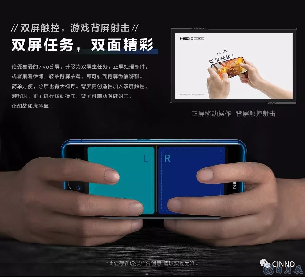 據(jù)了解,vivo NEX雙屏版與vivo NEX同期研發(fā),NEX雙屏版可以實(shí)現(xiàn)雙屏雙世界,用戶(hù)可以一面沉浸閱讀,另一面手機(jī)支付;在背屏上進(jìn)行延展觸控,玩游戲雙指可變四指。目前,雙屏觸控支持vivo游戲空間的所有橫屏游戲。