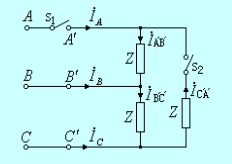 2.假設(shè)一條端線斷開(比如S1打開),求相電流以及線電流。