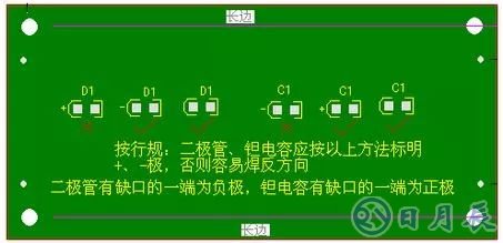 5. 關于二極管、鉭電容的極性標注:二極管、鉭電容的極性標注應符合行規(guī),以免工人憑經(jīng)驗焊錯方向。如圖: