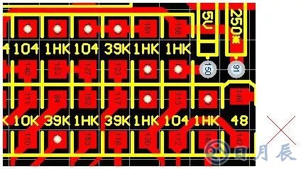 15. 關于大器件下面的小器件:有的人喜歡將小的器件排在同一層的大器件底下,比如:數(shù)碼管底下有電阻,如下圖: