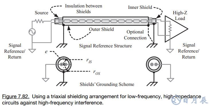 c、 對(duì)于雙層屏蔽線,一般采取內(nèi)層單端接地泄放靜電,外層雙端接地屏蔽電磁感應(yīng)。