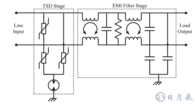 我們這里說的接口防護(hù)主要是指電磁騷擾防護(hù),具體包括傳導(dǎo)和輻射兩種干擾路徑。傳導(dǎo)的路徑可以是電源和信號(hào)線纜,輻射則主要來源于附近的電磁輻射源。對(duì)于防護(hù)的設(shè)計(jì)依然是宜疏不宜堵,需要設(shè)計(jì)干擾的泄放路徑和濾波方式。如一般接口的防護(hù)設(shè)計(jì):