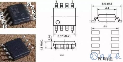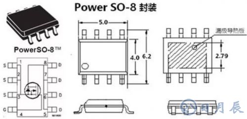 標(biāo)準(zhǔn)的SO-8封裝采用塑料將芯片包圍,低熱阻的熱傳導(dǎo)通路只是芯片到PCB的引腳。而底部緊貼PCB的塑料外殼是熱的不良導(dǎo)體,故而影響了漏極的散熱。