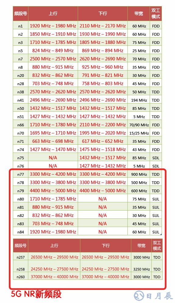在R15版本中,5G NR定義了從sub 6GHz到毫米波的多個頻段范圍,如下圖: