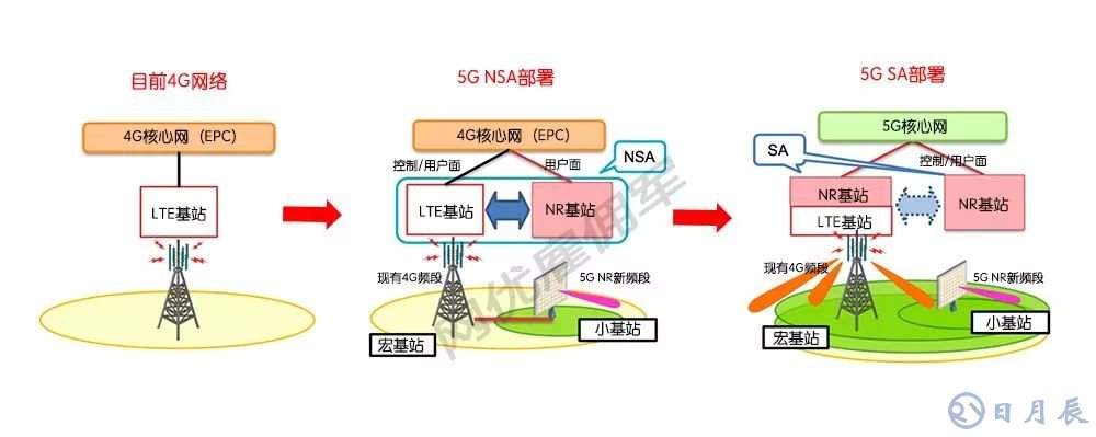 最初的5G采用NSA模式部署,即依托于現(xiàn)有4G來擴(kuò)充網(wǎng)絡(luò)容量和覆蓋。最初的5G與4G非常相似,網(wǎng)絡(luò)部署也主要利舊現(xiàn)有4G基站資源,這是一次從4G到5G的平滑演進(jìn)過程。