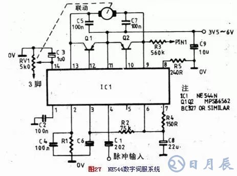 數(shù)字伺服電機控制單元,可以買到現(xiàn)成的集成電路。例如ZN409CE或NE544N型伺服電機放大器集成電路。圖26和圖27示出了這兩種集成電路的典型應用。