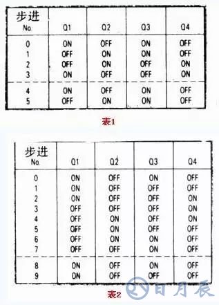 圖3所示的電路為四相混和型步進電機晶體管驅(qū)動電路的基本方式。它的驅(qū)動電壓是固定的。表1列出了全部步進開關(guān)的邏輯時序。