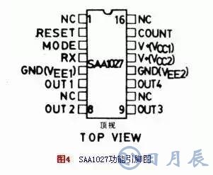 SAA1027集成電路有三個輸入控制端:計數(shù)、方式和復位。復位端通常是高電平。計數(shù)器每次從低電平到高電平的跳變,將使集成電路改變狀態(tài)。全部的工作狀態(tài)已由表3列出。