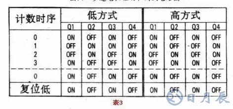 當方式控制輸入端為低電平時,在一個方向上(通常為順時針轉(zhuǎn)動)順序重復。反之,方式控制端為高電平時,則在另一個方向上(反時針轉(zhuǎn)動)順序重復。