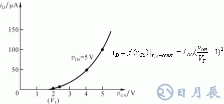 (1) 增強型NMOS管的轉移特性:在一定VDS下,柵-源電壓VGS與漏極電流iD之間的關系: