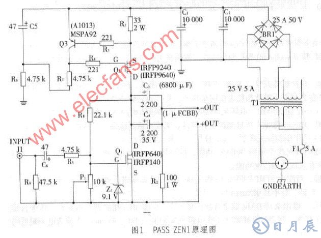 PASS ZEN1的靜態(tài)工作電流由R1設(shè)定,適當(dāng)加大R1可進(jìn)一步降低功耗,但同時(shí)機(jī)器的最大輸出功率也有所下降。在散熱片面積偏小情況下,可利用上述方法折中,但一般不建議這樣做。