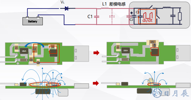 • LC濾波器要與遠(yuǎn)離DCDC高頻電流環(huán)路
