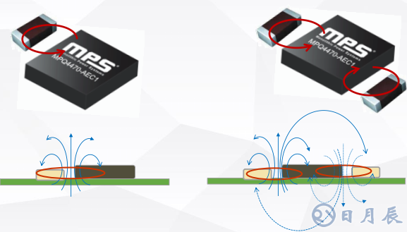 如圖7所示,對稱電容設(shè)計(jì)能明顯抵消磁場,如果電容集成到芯片內(nèi)部的話對傳導(dǎo)和輻射的高頻干擾都能起到極大的抑制作用,MPS的MPQ4491M就是一款高度集成的車載充電芯片方案,內(nèi)部集成了電容,具有良好的EMI性能。