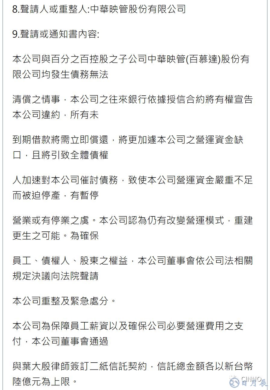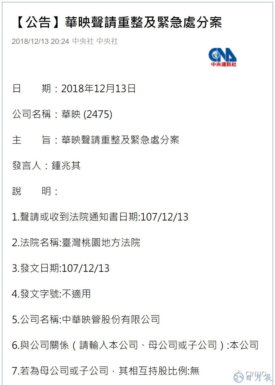 華映強(qiáng)調(diào),該公司認(rèn)為仍有改變營運(yùn)模式,重建更生之可能;為確保員工、債權(quán)人、股東之權(quán)益,本公司董事會依《公司法》相關(guān)規(guī)定決議向法院聲請本公司重整及緊急處分。