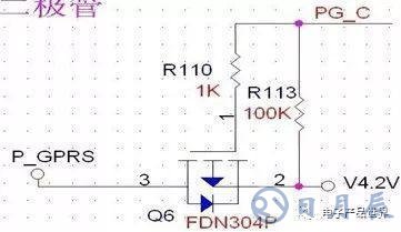 來看這個(gè)電路,控制信號(hào)PGC控制V4.2是否給P_GPRS供電。此電路中,源漏兩端沒有接反,R110與R113存在的意義在于R110控制柵極電流不至于過大,R113控制柵極的常態(tài),將R113上拉為高,截至PMOS,同時(shí)也可以看作是對(duì)控制信號(hào)的上拉。當(dāng)MCU內(nèi)部管腳并沒有上拉時(shí),即輸出為開漏時(shí),并不能驅(qū)動(dòng)PMOS關(guān)閉,此時(shí),就需要外部電壓給予的上拉,所以電阻R113起到了兩個(gè)作用。R110可以更小,到100歐姆也可。
