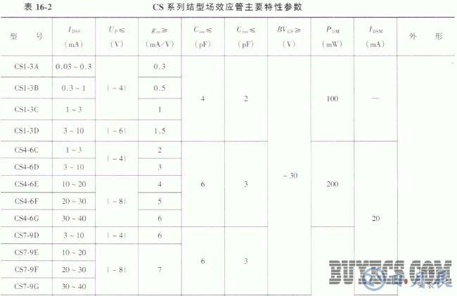 CS系列結(jié)型場(chǎng)效應(yīng)管的主要特性參數(shù)見表16-2 。